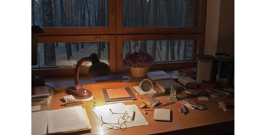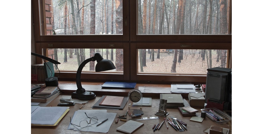Письменный стол А.И.Солженицына, каким он остался в августе 2008 года. Троице-Лыково, Москва, Россия. 2008