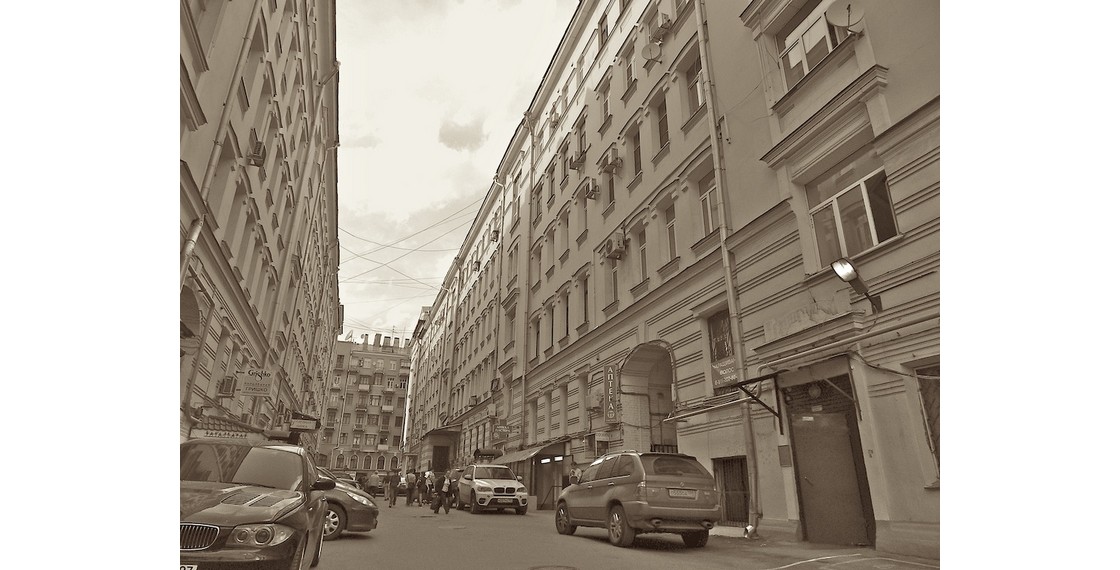 Двор дома на Тверской. Справа подъезд, в котором находится Музей-квартира Александра Солженицына. Москва, Россия. 2017