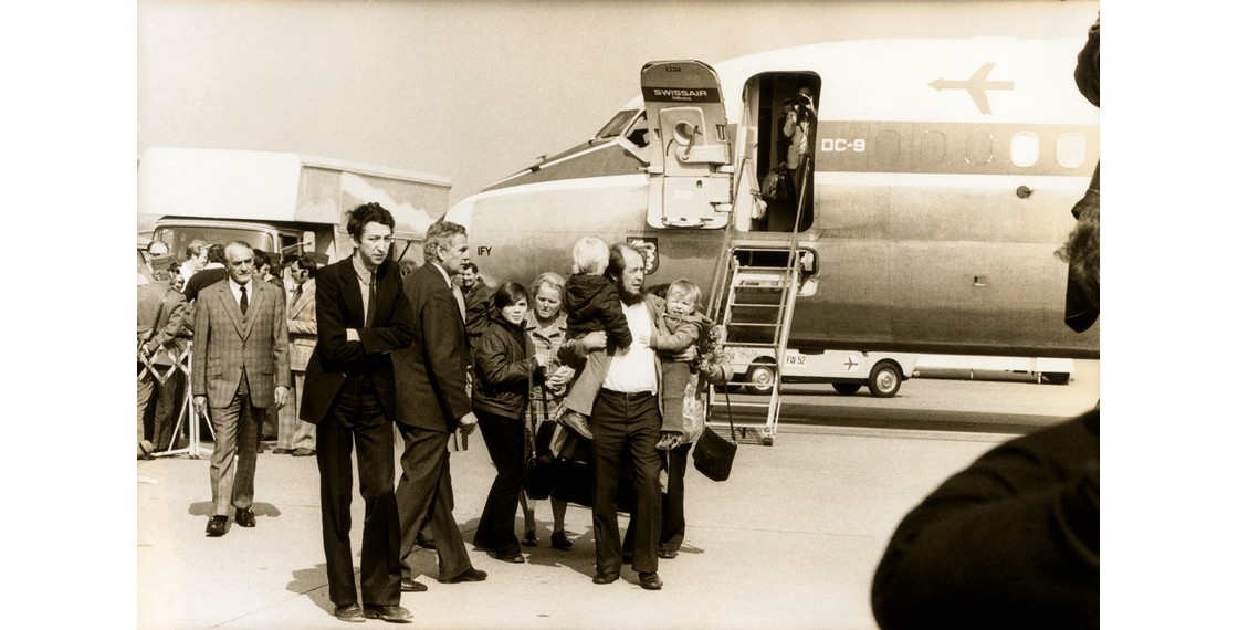 Солженицын встречает свою семью на Цюрихском аэродроме. Швейцария. 29 марта 1974
