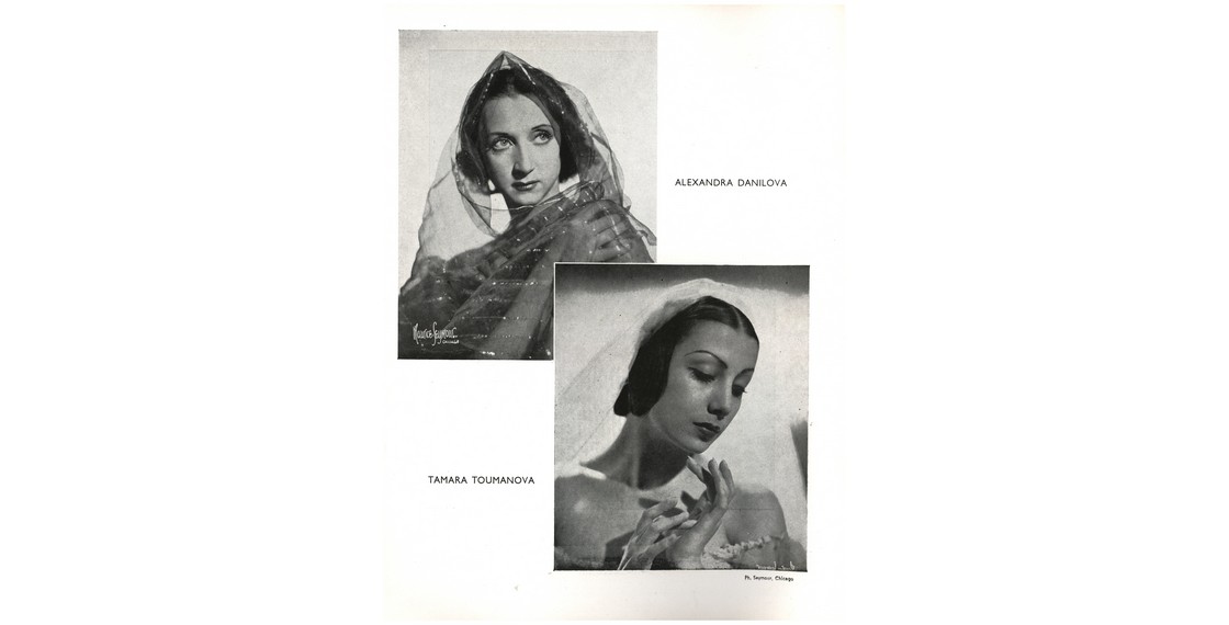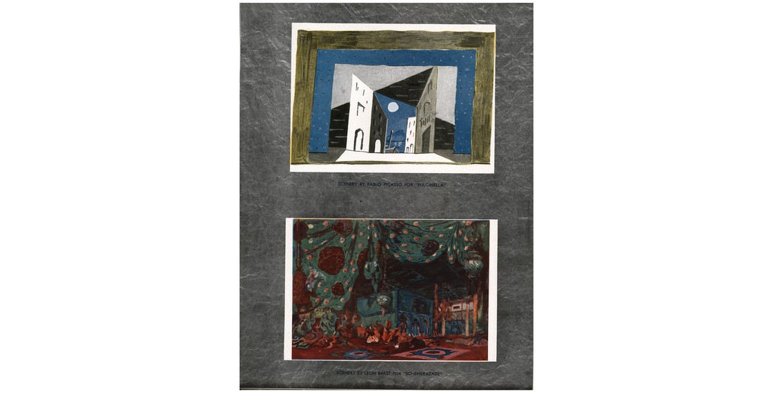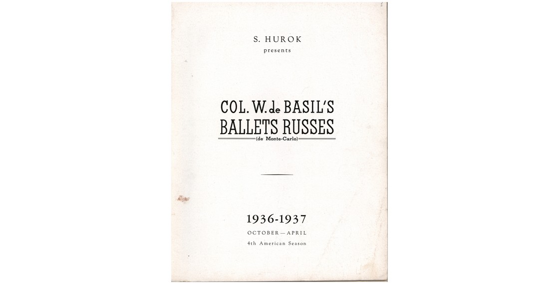 Один из буклетов как раз отражает этот период существования балетной труппы. Буклет был отпечатан перед гастролями в США в 1936–1937 годах. В нем помещены портреты ведущих артистов театра, либретто и программки всех спектаклей. На отдельных листах помещены иллюстрации с репродукциями эскизов декораций и костюмов, выполненных для театра Натальей Гончаровой («Сказки Феи», «Свадьба»), Пабло Пикассо («Пульчинелла»), Леоном Бакстом («Шехерезада»), Раулем Дюфи «(Пляж») и др.