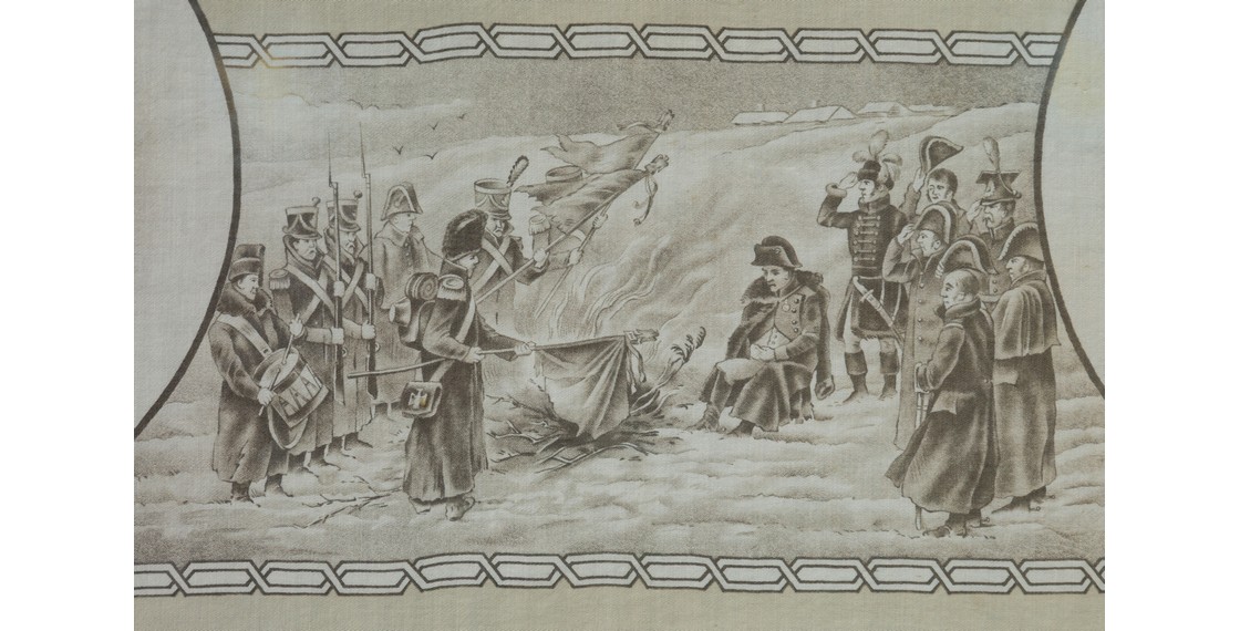 Особенно разнообразными стали сувенирные платки к 100-летнему юбилею победы в Отечественной войне 1812 года. Владельцы самых разных промышленных производств использовали этот славный юбилей для продвижения своей продукции. Были отчеканены памятные значки и медали, отлиты из бронзы и меди миниатюрные бюсты обоих императоров: Александра I и Наполеона. Не отставали от других предприятий и текстильные фабрики, было изготовлено огромное количество памятных платков со сценами сражений и портретами военачальников и императоров Франции и России.