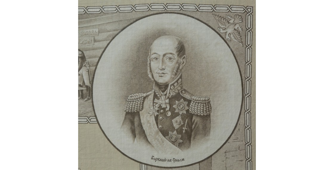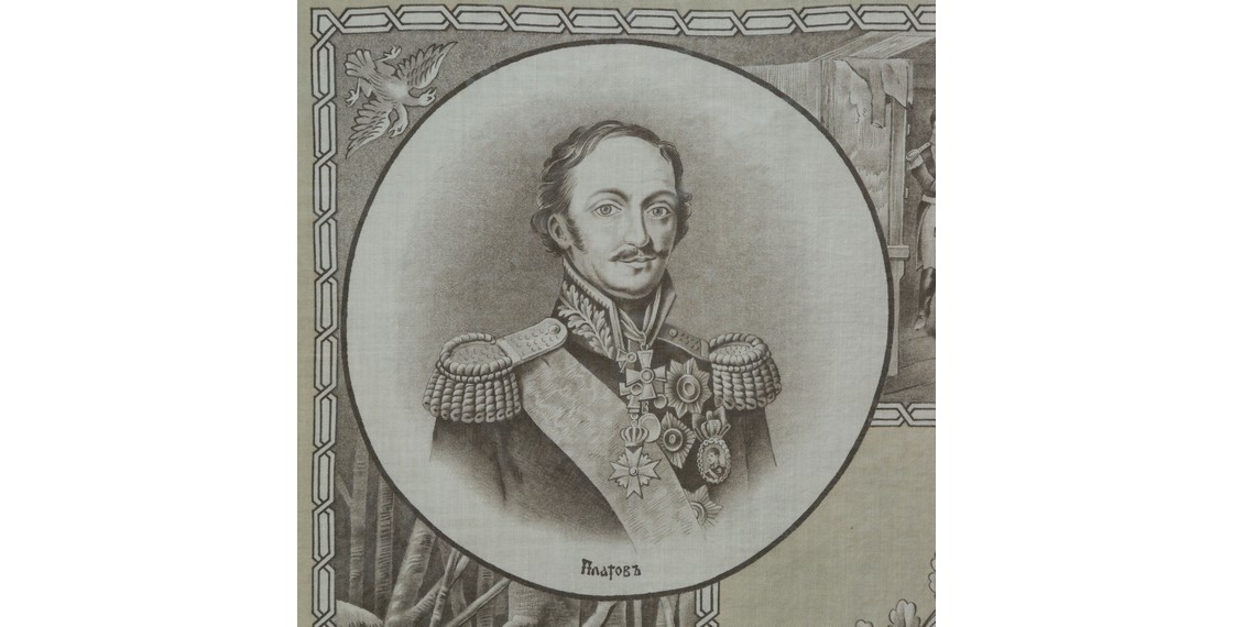 На памятных тематических платках Прохоровской Трехгорной фабрики изображали практически все, что было связанно с войной 1812 года: портреты героев, памятные места, решающие сражения.