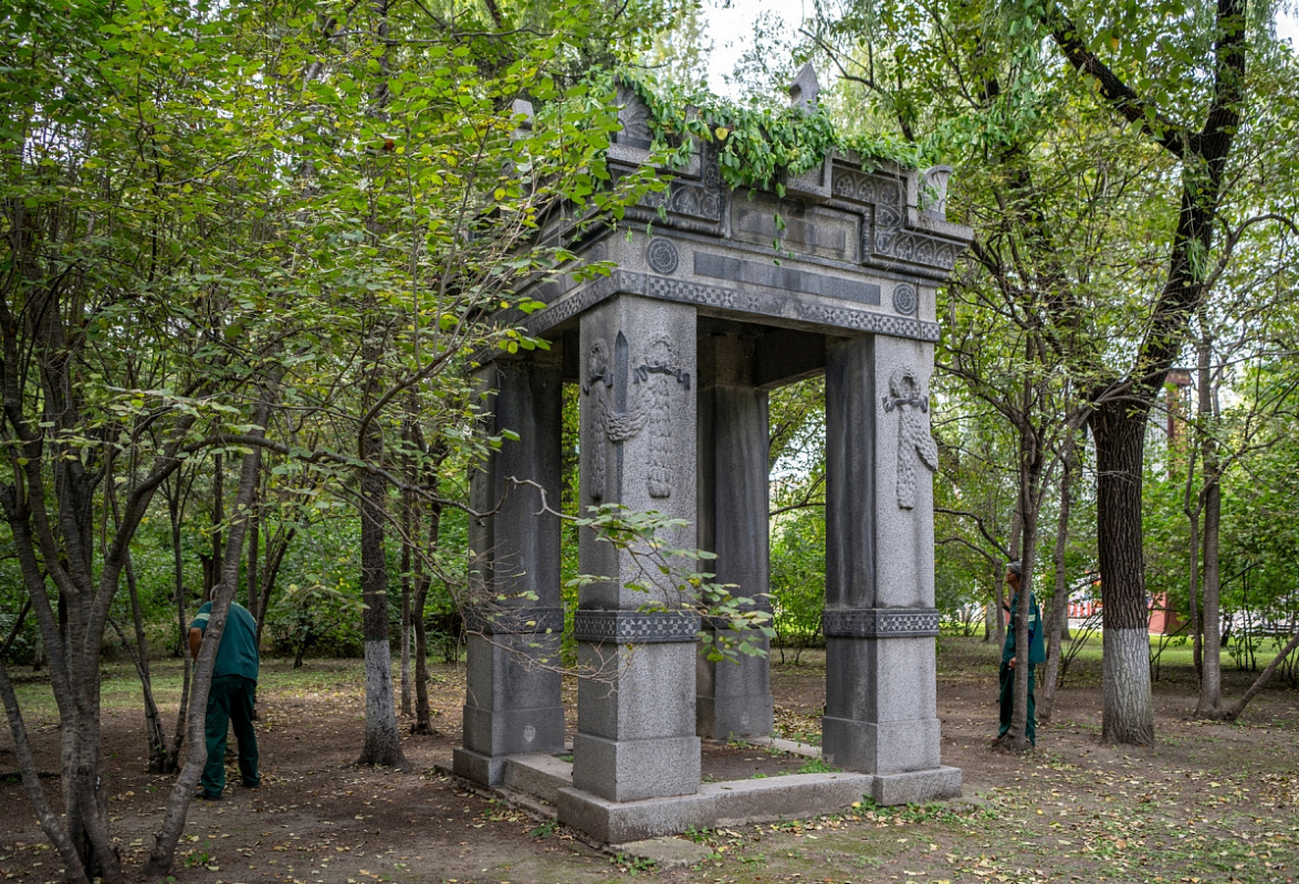 Исторические фотографии и воспоминания харбинцев свидетельствуют о высоком художественном уровне надгробных памятников Успенского кладбища, которые были не только типовыми, но и авторскими. Декоративные детали порой выписывались из Италии, бывали случаи привлечения корейского мастера по камню. Из харбинских авторов памятников известны некоторые имена художников-монументалистов, скульпторов, архитекторов: В.Ф. Винклер, С.И. Володченко, Е.А. Уласовец, Ю.В. Смирнов, И.И. Кораблев, А.Г. Зальцман и др. На особо важные памятники объявлялись архитектурные конкурсы. Владелец мастерской по изготовлению памятников, специалист по обработке камня Г.Г. Урзов выполнил множество художественных надгробных памятников, в том числе и по своим проектам. Единственным на 2000 год не снесенным китайскими властями памятником остался его авторства склеп ориенталиста Н.Д. Глебова из коричневого гранита, он и сейчас служит декоративно-монументальным украшением парка.