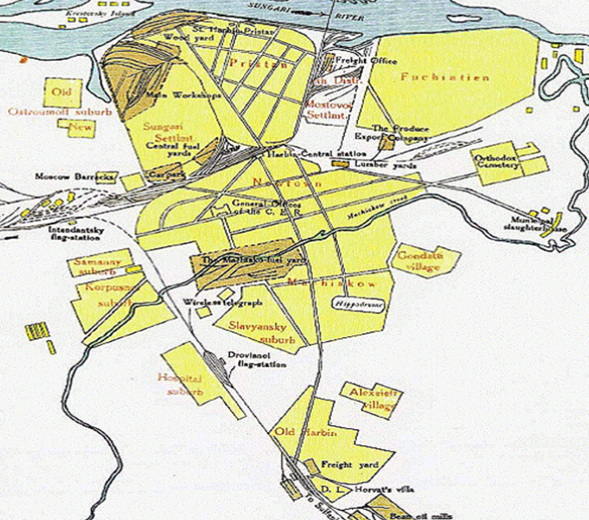 Последнюю версию, в частности, подтверждают три карты. Первая – карта Великого Харбина 1933 года [представлена в интерактивном формате в «Карте русского зарубежья»] с указанием расположения поместья генерала Д.Л. Хорвата в Старом Харбине на Усадебной улице около железнодорожной ветки на Владивосток недалеко от железнодорожной станции «Старый Харбин». Вторая карта Старого Харбина включена в «Альбом сооружений и типовых чертежей Китайско-Восточной железной дороги. 1897–1903 гг.» [М., 1903. С. 271] среди карт различных районов Харбина 1903 года. Третья карта на английском языке (около 1905 г.) показывает расположение D.L. Horvat's villa недалеко от Freight yard (Товарной станции) в районе Старый Харбин (Old Harbin).