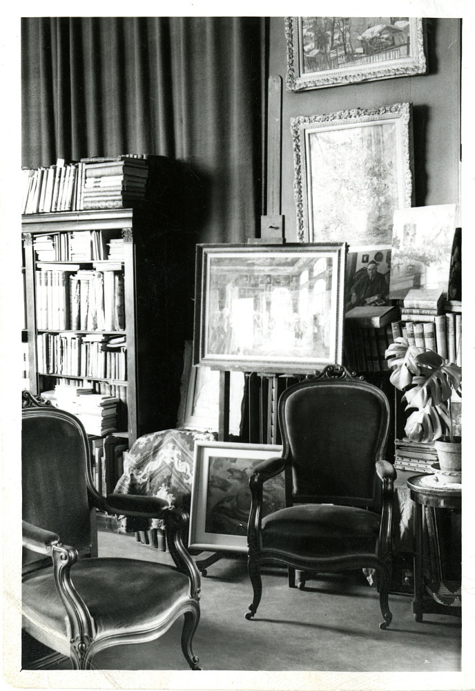 Масштабы квартиры впечатляли гостей: «Был я на их <Бенуа> новой квартире, — напишет Константин Сомов сестре Анне (23 янв. 1936), — превосходная, внизу огромная высокая мастерская с огромными окнами на далекий просторный вид, а по внутренней лестнице поднимаешься в столовую и спальню, кухню и “сортир” и ванну. Прямо великолепно. Мастерская же огромная» [Сомов К.А. Письма. Дневники. Суждения современников. М., 1979. С. 426–427]. Такие впечатления долетали аж до Советского Союза, куда иногда возвращались друзья-художники и пересказывали увиденное. Их свидетельства оседали в дневниках, о чем мы узнаем благодаря Анне Петровне Остроумовой-Лебедевой, переписка с которой оборвалась у Александра в 1929 году. Но интерес к его жизни, обустроенности в Париже и память о нем не утрачивались и остались в ее дневниковых тетрадях: «Бенуа, по словам Наталии Валентиновны <Серовой>, живет хорошо и имеет прелестную квартиру и великолепную мастерскую», – запишет она 22 марта 1937 года [Дневник А.П. Остроумовой-Лебедевой. – ОР РНБ. Ф. 1015. Д. 53. Л. 75].