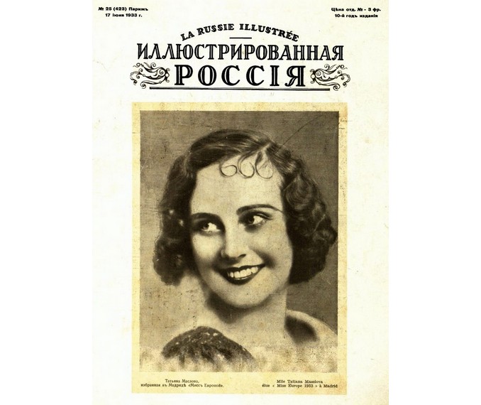 С 1925 года журнал проводил конкурс красоты «Королева русской колонии Парижа», получивший в 1929-м название «Мисс Россия». Первой победительницей стала Лариса Попова, избранная на балу «Иллюстрированной России» в отеле «Лютеция», последней (1939) – Ирина Бородулина. По просьбе редактора М.П. Миронова, в одном из конкурсов приняла участие дочь писателя, модель и кинозвезда Ксения (Киса) Куприна (1908–1981). Она не выиграла, но трижды появлялась на обложках еженедельника в образах из своих фильмов (март 1927, февраль и октябрь 1935). Несколько раз выборы «Мисс России» проходили в редакции журнала. Победа в конкурсе 1931 года в доме по адресу рю Кардине, 112-тер досталась Марине Федоровне Шаляпиной. Членами жюри в разное время были: М. де Валеф (председатель международных европейских конкурсов красоты), Н.А. Тэффи, К.А. Коровин, А.Н. Бенуа, Е.Н. Рощина-Инсарова, А.И. Куприн, Б.К. Зайцев, Н.В. Плевицкая, Б.А. Гордон, М.Л. Гофман, И.Я. Билибин, С.М. Лифарь, А. Седых (собств. – Я.М. Цвибак), Дон-Аминадо, М.А. Дризо, С.К. Маковский, О.Н. Астрахан-Клейн, Л.Ф. Зуров и др. Девушки, занявшие первое место, с 1929 года представляли Россию на конкурсе «Мисс Европа». В 1933-м в Мадриде удача улыбнулась Татьяне Масловой, и «над тринадцатью национальными флагами европейских стран гордо взвилось русское трехцветное знамя» [От редакции // Илл. Россия. 1933. № 25 (423). С. 1]. Вскоре после этого русская «Мисс Европа» триумфально посетила уже знакомую ей редакцию на рю Клеман Маро, 24. Под восторженные аплодисменты девушке вручили цветы, парфюм от известной фирмы «Ралле» и торт.