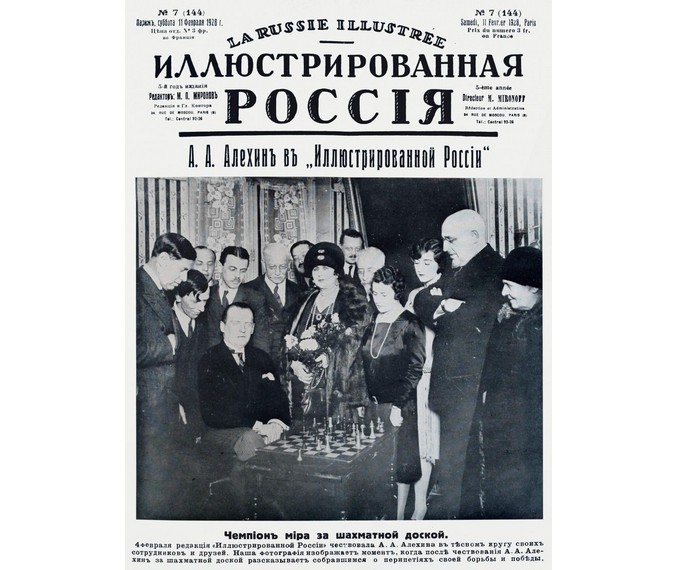 4 февраля 1928 года в редакции еженедельника на рю де Моску, 34 приветствовали «нового шахматного короля» – четвертого чемпиона мира Александра Александровича Алехина (1892–1946), вернувшегося из Буэнос-Айреса. Обращаясь к нему, редактор М.П. Миронов отметил, что своей победой он «вписал новую страницу в блестящую историю русских достижений» [Виталин Л. Чествование А.А. Алехина // Илл. Россия. 1928. № 7 (144). С. 2]. Поздравить триумфатора пришли Н.А. Тэффи, А.И. Куприн, В.Л. Бурцев, М.А. Дризо, П.Н. Милюков. М.А. Алданов и др. Вечер закончился шуточным матчем Алехина с некоторыми из присутствующих.