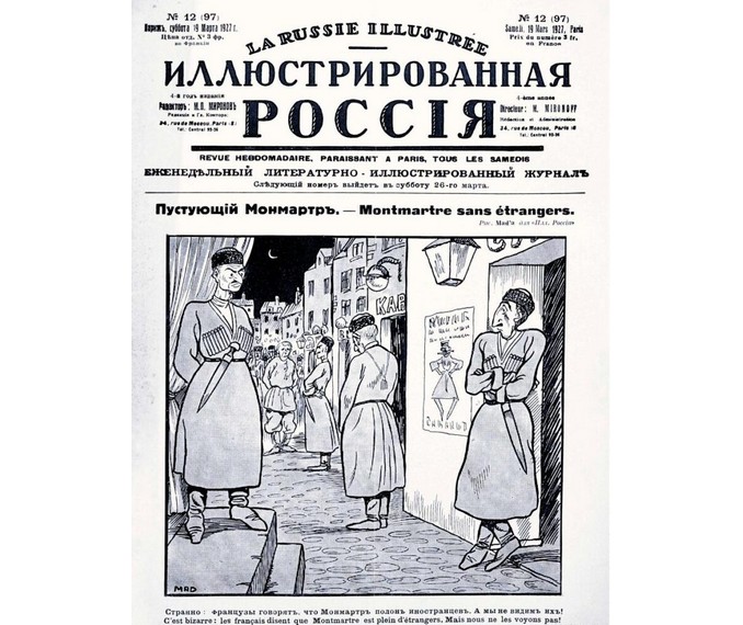 Самый популярный журнал русской эмиграции, еженедельник «Иллюстрированная Россия» издавался в Париже с 1924 по 1939 год. За 16 лет вышло 748 номеров. Редакция и главная контора издания сменили пять адресов, дольше всего оставаясь в 8-м округе Парижа на рю де Моску, 34, Клеман Маро, 24 и де Ла Тремуйль, 17. Первым и наиболее кратким местом пребывания стал адрес, находившийся в 6-м аррондисмане (Бульвар Сен-Мишель, 16), где редакция журнала обосновалась в 1924 году. Два последних адреса располагались между рекой Сеной и Елисейскими полями. Рядом расположен Американский кафедральный собор Святой Троицы, освященный в 1886-м.
