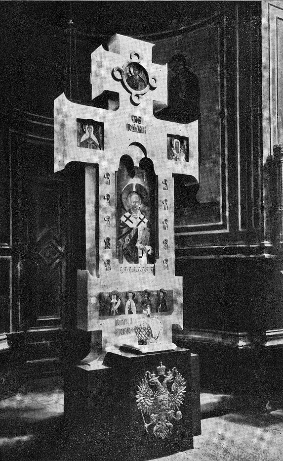 Трудами «Союза ревнителей памяти императора Николая II» в 1938 году в храме установлен трехметровый крест, выполненный по рисунку участника Сопротивления, художника А.А. Алымова, с надписью: «Императору Великому Мученику, Его Царственной Семье, Его верным слугам, с Ним мученический венец принявшим, и всем Россиянам, богоборческой властью умученным и убиенным».