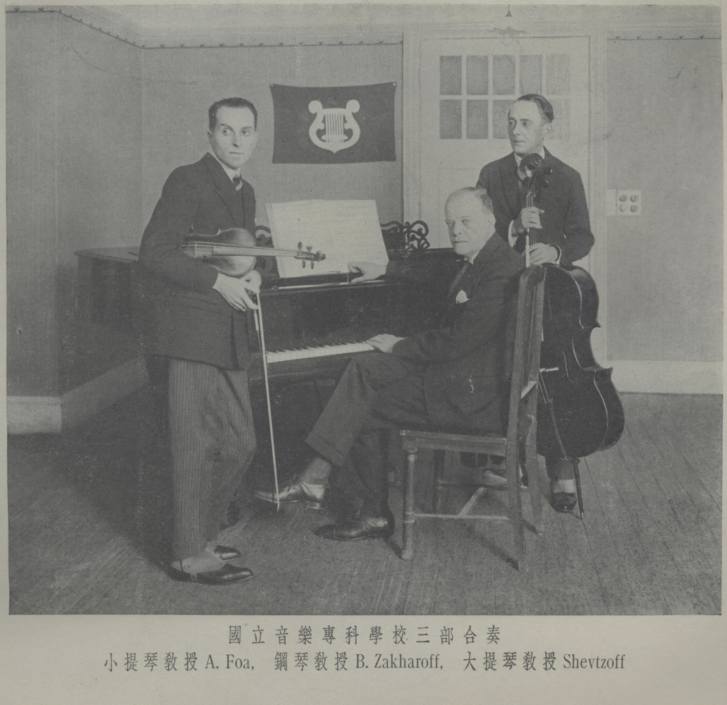 Петербуржец Борис Степанович Захаров (1887–1943), однокурсник и близкий друг композитора Сергея Прокофьева, вскоре после революции 1917 года стал профессором Петербургской консерватории, но гастрольный график его жены, знаменитой скрипачки Цецилии Ганзен, привел пару на Дальний Восток. Сначала Захаров отказывался преподавать фортепиано в Шанхайской консерватории, сравнивая китайских студентов с младенцами. Позднее он охотно включился в педагогический процесс и признавал, что изначально недооценил своих учеников.