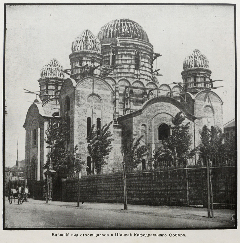 Закладка фундамента храма состоялась 4 июня 1933 года в день Св. Троицы во время торжественной службы, на которой присутствовало около тысячи человек. Строительство храма совпало с посвящением иеромонаха Иоанна (Максимовича; 1896–1966) во епископы и назначением его в мае 1934-го года на Шанхайскую епархию. Под его руководством (владыка Иоанн возглавил Технический и Строительный советы) к 1937 году возведение и отделка храма были завершены. Высота Кафедрального собора составила 35 метров, общая стоимость сооружения и оборудования храма по окончании работ превысила 150.000 долларов. Кафедральный собор стал важнейшим духовным центром, который организовывал, упорядочивал и защищал жизнь русской православной общины в Шанхае. Сам владыка Иоанн каждое утро и каждый вечер совершал в храме службы, здесь проходили крестины, отпевания и бракосочетания (весной 1942 года в Кафедральном соборе знаменитый певец Александр Вертинский венчался с Лидией Циргвава).