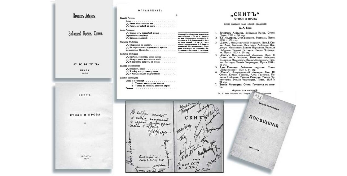 Для любого автора, даже начинающего, важны всегда публикации, поэтому скитовцы и сам Бем уделяли этому вопросу большое внимание. Их стихи и проза часто появлялись на страницах русской зарубежной периодики. Это пражские журналы «Своими путями», «Воля России» и «Студенческие годы», парижские «Современные записки», «Возрождение» и так далее. У них также выходили коллективные сборники. Первый такой сборник «Скит I» был опубликован в 1933 году, последний — в 1937 году (всего их было четыре), а до этого, в 1929 году, вышла книга одного из лучших поэтов «Скита» — Вячеслава Лебедева — «Звездный крен». В 1935 году в Берлине был напечатаны стихи Аллы Головиной «Лебединая карусель»; в 1936 году в серии изданий «Скита» вышли «Посещения» Эмилии Чегринцевой, в 1938 году — ее сборник «Строфы». В 1934 году группа скитовцев и «друзей Скита» задумалась о создании собственного печатного издания. Даже была избрана редакционная коллегия в составе А.Ваулина, В.Морковина, В.Мансветова и С.Чегринцева, было придумано и название — «Остров». Очень хотелось, чтобы журнал был не только скитовским. А еще хотелось выпускать литературную газету «Трибуна» (издателем был назначен Сергей Чегринцев). Но денег на оба проекта так и не нашли, как и на третий — журнал «Мансарда», задуманный в мастерской Алексея Головина, располагавшейся под самой крышей одного из домов вблизи Вацлавской площади.