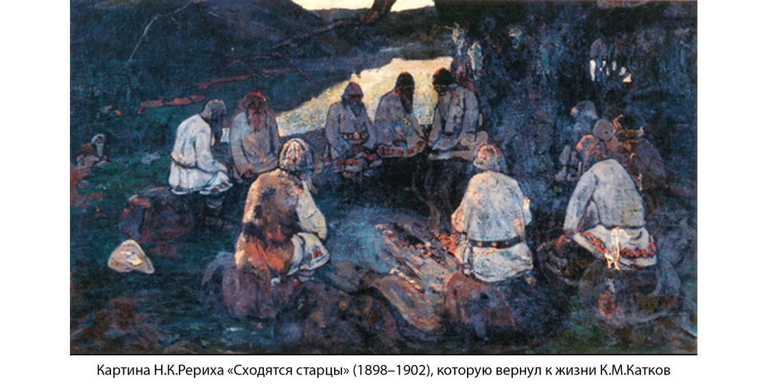 В 1965 году он переехал в Нью-Йорк и там осел. В эти годы он расписал церковь в канадском Монреале, консультировал работы по росписи православной церкви в Ново-Дивеево под Нью-Йорком, сотрудничал с музеем Рериха как художник-реставратор. Однажды его пригласили в музей для осмотра картины, которая по счастливой случайности попала к ним, можно сказать, с улицы. Это была картина Рериха «Сходятся старцы», которая вместе с другими его 74 полотнами была отправлена в 1904 году на Всемирную выставку в Сент-Луис (США). В 1906 году за долги комиссионера выставки многие экспонаты были распроданы на аукционе, среди них упоминалась и эта работа Николая Константиновича. В 1916 году картина «Сходятся старцы» находилась в музее Сан-Франциско. Когда и каким образом она исчезла из музея, так и не выяснили. Но слава Богу, что нашлась. Картина была доставлена из Калифорнии в Нью-Йорк. Для ее реставрации был приглашен Кирилл Катков, хорошо знавший живопись Рериха. Полотно было в ужасном состоянии. Масляная краска почти полностью отделилась от холста. Надо было частично заменить ветхий холст, перенести картину на новый холст и по возможности починить изношенные и порванные места. Все это было сделано блестяще. Кирилл Михайлович изучил ранние наброски и репродукции картины и таким образом смог восстановить те ее части, которые были совсем разрушены. Родившееся заново полотно повесили на стене большого приемного зала, где посетители могли его видеть и им восхищаться. Впрочем, Кирилл Катков не только эту картину Рериха вернул к жизни, были и другие.
