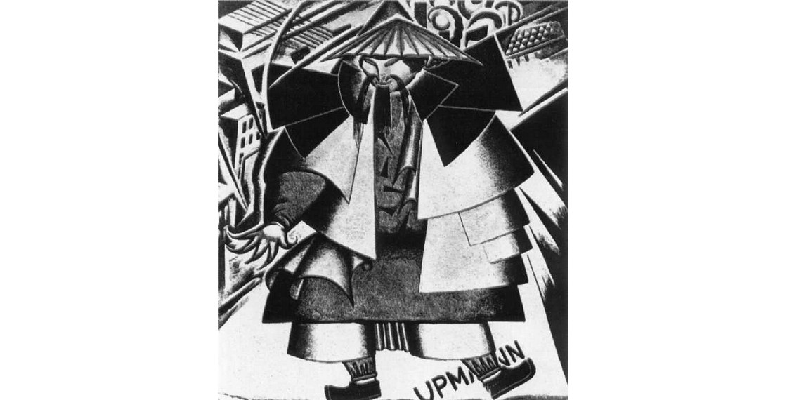 Осенью 1918 года художник участвовал в праздничном украшении Исаакиевской площади к первой годовщине революции и в оформлении первой постановки спектакля «Мистерия-буфф» В.Маяковского в декорациях К.Малевича. Вновь вернувшись к теме «Упманна», написал два панно, изображавших денди и китайца, но теперь они назывались «Европа» и «Азия». Полотнища высотой в три этажа висели на фасаде гостиницы «Англетер», окна которой выходили на дом Мятлевых, где расположились Наркомпрос и его отдел ИЗО. Тема антиколониализма, Европы, эксплуатирующей Азию, намеченная в балете, получила здесь полное развитие.