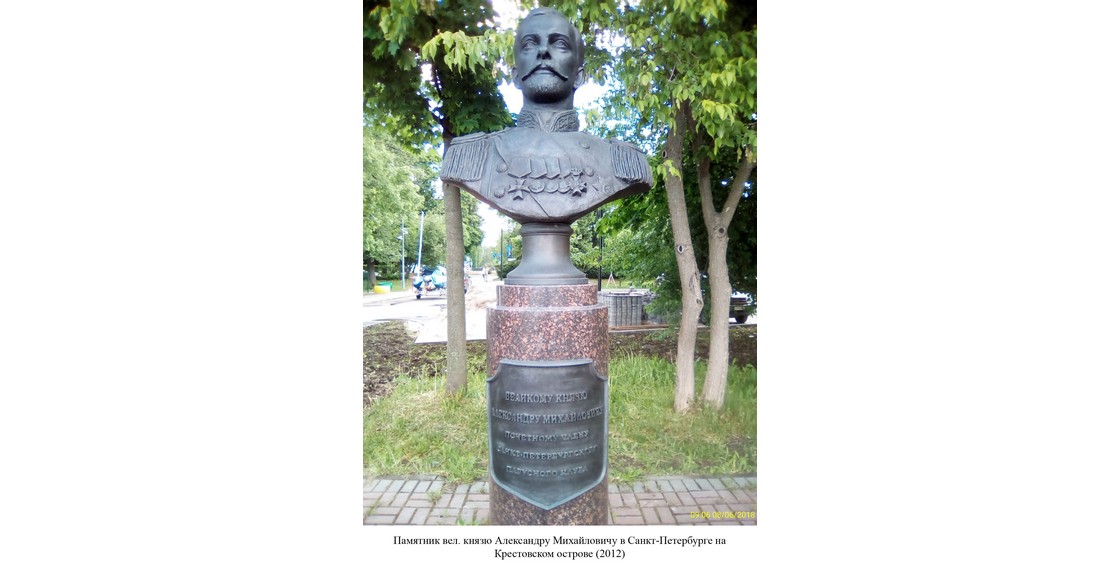 9 июля 2012 года в Санкт-Петербурге, на территории яхт-клуба «Крестовский», благодарные потомки установили бронзовый памятник-бюст великому князю Александру Михайловичу (скульптор А.С.Чаркин).