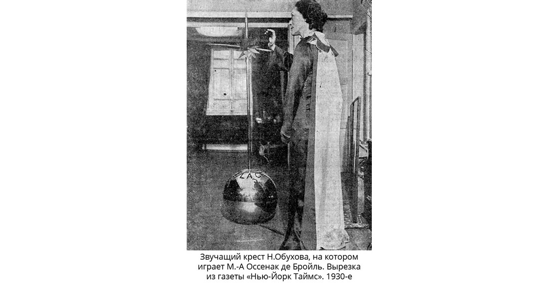 В 1930-е годы концерты Обухова уже сопровождались электроакустическим звучащим крестом (Croix Sonore), инструментом, изготовленным в 1929 году. Он представляет собой расположенную на уровне человеческого роста стеклянную сферу с крестом внутри, в центре креста помещен алмаз. Звук возникал при приближении или удалении рук исполнителя, при этом изменялись и громкость, и высота звука (надо признать, что за несколько лет до Обухова этот же принцип получения музыкальных звуков был реализован советским изобретателем Львом Терменом, его инструмент назывался терменвокс, но конструкция у него была другая).