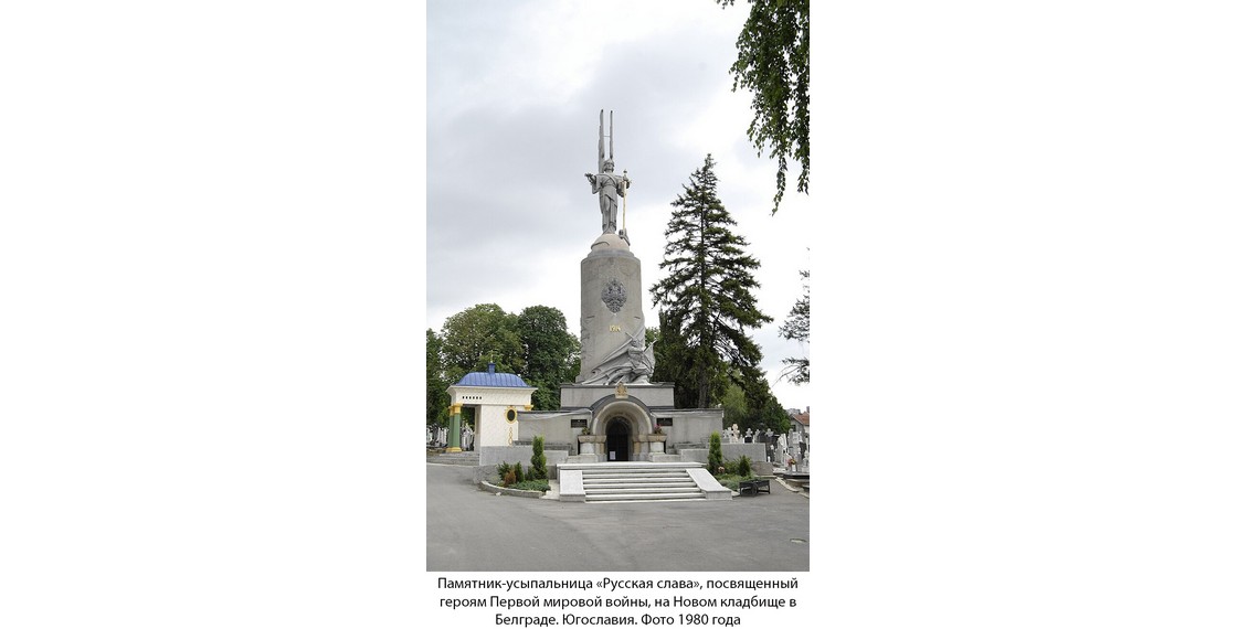 Второй монумент — памятник «Русская слава» — возвышается вблизи Иверской часовни. Выполнен в форме артиллерийского снаряда с фигурой Архангела Михаила на вершине. На памятнике высечены российский герб и несколько надписей. Одна из них — на русском языке — гласит: «Вечная память императору Николаю II и 2 000 000 русских воинов Великой войны». Другая — на сербском: «Храбро павшим братьям русским на Солунском фронте. 1914–1918». Сам мемориал строился непросто, были трудности со средствами. Инициатором постройки стал полковник Михаил Скородумов, георгиевский кавалер, раненный 11 раз, потерявший на войне правую руку. Он организовал сбор необходимых средств.