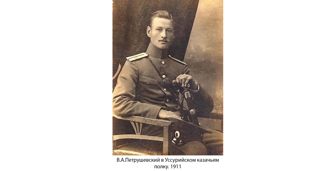 В 1908 году после окончания корпуса Владимир Александрович поступил в Михайловское артиллерийское училище в Петербурге, а через год перевелся в Николаевское кавалерийское училище, которое успешно окончил в 1911 году. Чтобы служить ближе к семье, Владимир Петрушевский по собственному желанию вышел хорунжим в Уссурийский казачий дивизион. Вслед за ним Хабаровский кадетский корпус и Николаевское кавалерийское училище окончил и его брат Георгий, став офицером в 1914 году.