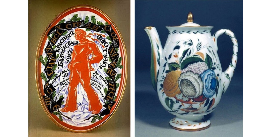Во время Гражданской войны, когда в стране не хватало бумаги даже для газет и плакатов, революционное правительство прибегало к самым необычным формам пропаганды. Уникальным явлением в искусстве 1918–1921 годов стал агитационный фарфор. На Государственном (бывшем Императорском) фарфоровом заводе в Петрограде оказались большие запасы нерасписанных изделий, которые решено было использовать не просто как посуду, но в первую очередь как средство революционной агитации. В 1918–1923 и 1925–1927 годах Чехонин — художественный руководитель Государственного фарфорового завода в Ленинграде. А в промежутке — в 1923–1925 годах — заведовал художественной частью «Новгубфарфора» (Волховский фарфоро-фаянсовый завод).