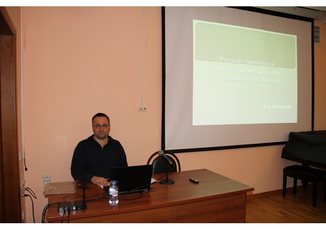 Лекция ведущего научного сотрудника отдела культуры российского зарубежья ДРЗ, кандидата исторических наук П.А.Трибунского была посвящена созданию, функционированию и ликвидации Русского зарубежного литературного архива при Тургеневской библиотеке.