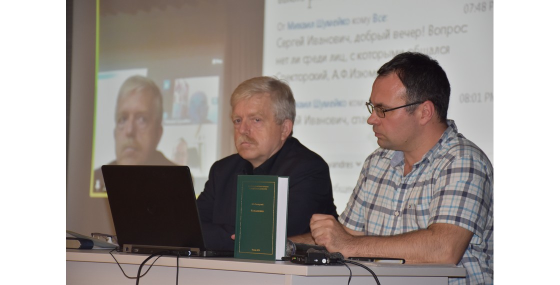 На заседании прошла презентация книги воспоминаний известного обществоведа, деятеля высшего образования конца XIX – первой половины XX века, эмигранта Евгения Васильевича Спекторского (1875–1951): Спекторский Е.В. Воспоминания / Вступ. ст. С.И.Михальченко, Е.В.Ткаченко; подгот. текста, коммент. С.И.Михальченко; коммент. П.А.Трибунского. Рязань, 2020. 654 с.: ил. (Серия «Новейшая российская история: исследования и документы»; т. 13).