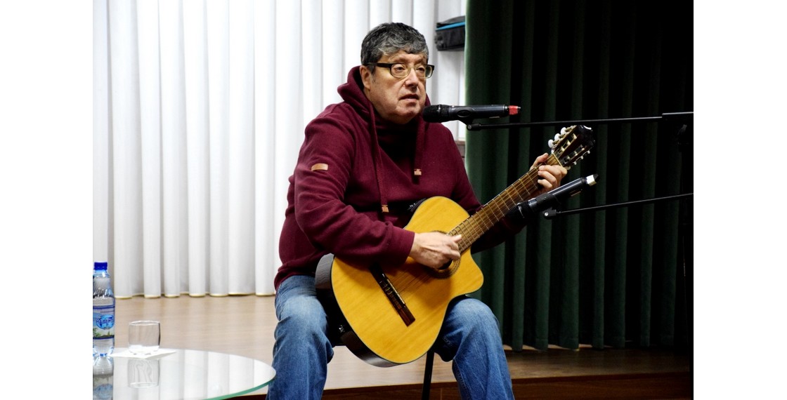 Вечер открыл заместитель директора библиотеки, историк Дмитрий Мурашов. Затем Виктор Леонидов более полутора часов рассказывал о работе ДРЗ и исполнял свои песни.
