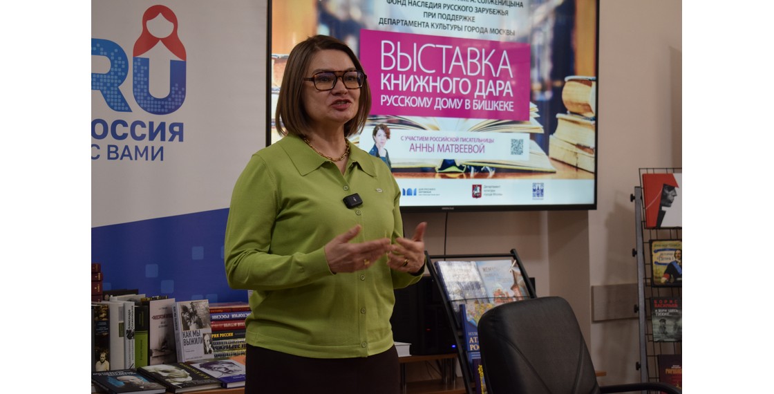 За это время в гостях у киргизстанцев побывали многочисленные специалисты Дома русского зарубежья и преподаватели Государственного института русского языка им. А.С.Пушкина. В этот раз по приглашению ДРЗ в открытии выставки приняла участие российская писательница Анна Матвеева — автор повести «Перевал Дятлова», романов «Завидное чувство Веры Стениной» и «Каждые сто лет», участник коллективных сборников рассказов «Тело», «Механическое вмешательство», «Чудо как предчувствие», «Семейные обстоятельства» и др. Ее книги отмечены наградами множества литературных премий, она четырежды становилась финалистом премии «Большая книга», а в 2024 году стала автором текста Тотального диктанта. Приезд Анны Матвеевой в Бишкек вызвал большой интерес у местных СМИ. Она дала интервью на радио «Спутник» и приняла участие в записи литературного подкаста.