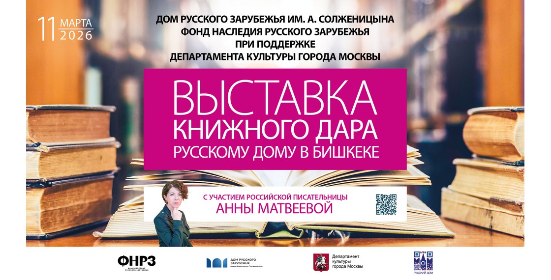 11 марта 2026 года в Русском доме в Бишкеке (Киргизия) состоялась выставка книг ведущих российских издательств. На ней были представлены 300 книг гуманитарной тематики, переданных в дар библиотеке Русского дома. Выставка организована Домом русского зарубежья им. А.Солженицына совместно с Фондом наследия русского зарубежья при поддержке Департамента культуры города Москвы.