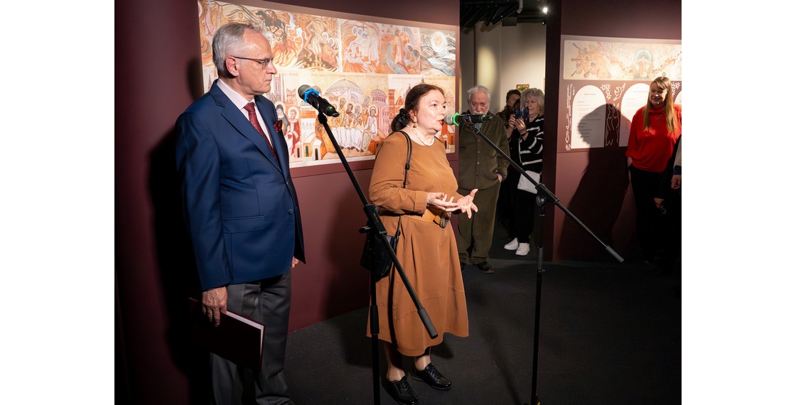 Медонские росписи были переданы из Франции благодаря содействию Посла России во Франции Александра Авдеева. Сейчас Александр Алексеевич возглавляет Фонд наследия русского зарубежья. Благодаря финансовой поддержке Фонда состоялась и нынешняя выставка. «Это событие, — сказал Александр Авдеев, — имеет много смыслов: во-первых, чудо иконописи из Медона Никита Алексеевич Струве без колебаний передал в ДРЗ. Он был убежден, что эта коллекция должна находиться здесь, что Дом русского зарубежья нужен России». Во-вторых, Александр Алексеевич обратил внимание присутствующих на соединение живописной и иконописной техник в творчестве сестры Иоанны, на ее «свободу в пластике» и назвал ее работы «жемчужиной художественного фонда России».