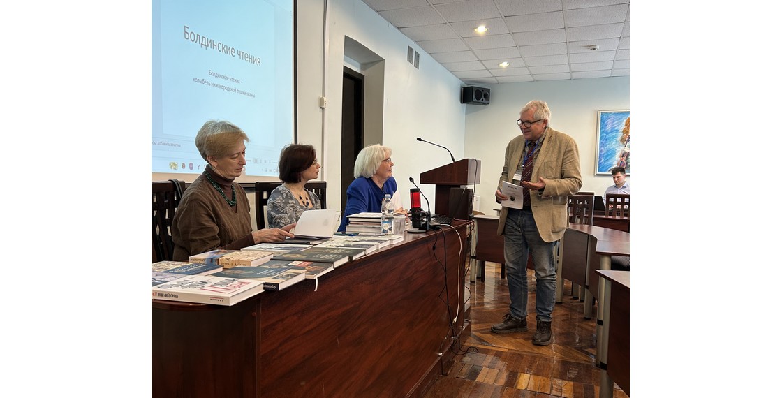 На открытии конференции прозвучали приветственные слова представителей российской науки и культуры. Начальник Управления научно-исследовательской деятельности НГЛУ им. Н.А.Добролюбова, заведующий кафедрой международных отношений и зарубежного регионоведения, кандидат политических наук Д.С.Коршунов говорил о важности проведения литературоведческих конференций. В приветственном слове ректора Среднерусского гуманитарно-технологического института (Обнинск), кандидата филологических наук Е.Д.Колесниковой было обосновано взаимодействие «физиков и лириков» в контексте развития российской науки. Эмоционально-пронзительным было обращение к участникам конференции преподавателя Луганской государственной академии культуры и искусств им. М.Матусовского, члена Союза писателей России Е.А.Заславской, в котором имя Пушкина соединилось с актуальными событиями, происходящими в ДНР и ЛНР, в финале выступления прозвучали стихи поэтессы, никого не оставившие равнодушными. Главный редактор старейшего независимого издательства интеллектуальной литературы по различным направлениям гуманитарного знания «Алетейя» (Санкт-Петербург) И.А.Савкин свое выступление посвятил презентации важнейших книг о Пушкине и пушкинистике, а также другим изданиям научной сферы. Приветственная часть конференции завершилась выступлением ветерана НГЛУ им. Н.А.Добролюбова, кандидата филологических наук, доцента Г.Л.Гуменной, которая рассказала об истории «Болдинских чтений»: это был настоящий научный доклад, отличавшийся глубиной и содержательным анализом научных событий нескольких десятилетий. К юбилею Г.Л.Гуменной в издательстве «Алетейя» была выпущена монография «Пушкин свой и (все)общий» (СПб., 2026), среди авторов которой значатся многие участники пушкинских конференций, проходивших в Болдино и Нижнем Новгороде.