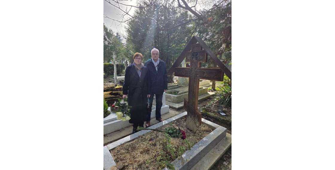 5 марта Виктор Москвин и Светлана Дубровина, в сопровождении председателя Комитета по уходу за русскими православными захоронениями в Сент-Женевьев-де-Буа, создателя интерактивной карты захоронений Николая Лопухина и автора книг о русском кладбище Жан-Пьера Ламотта, а также советника по культуре Посольства РФ во Франции Наталии Ханцевич посетили русское кладбище на Сент-Женевьев-де-Буа и поклонились могилам Н.А. и М.А.Струве, о. Сергия Булгакова, Сержа Лифаря, Владимира Белановича (учителя Жака Ширака), Рудольфа Нуриева… и всем соотечественникам, упокоившимся вдали от родины. Делегация также побывала в крипте храма Покрова Пресвятой Богородицы в Сент-Женевье-де-Буа, где недавно завершилась реставрация замечательных росписей Альберта Бенуа, и отдала дань памяти упокоившимся здесь иерархам Русской православной церкви и создателю этого храма Альберту Бенуа.