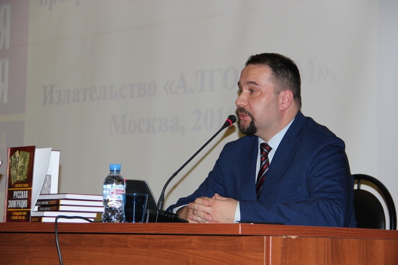 Открывая презентацию, автор рассказал о процессе создания книги и ее пути к читателю, обратил внимание на мотивацию добровольцев-эмигрантов.